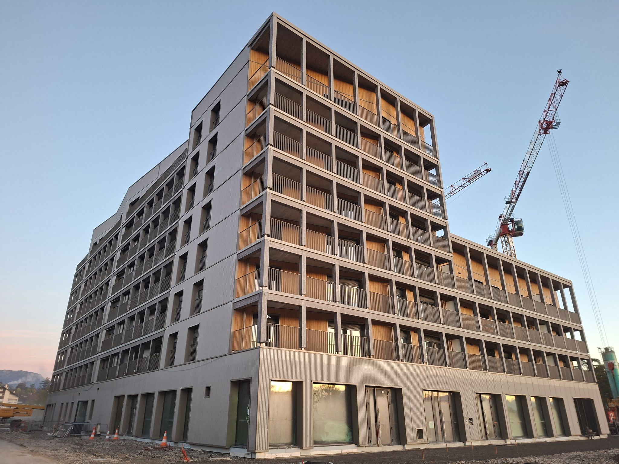 🪵 Cette opération de 5 700 m² fait la part belle au bois, que l’on retrouve sur son bardage, sa façade ou ses isolants, et au réseau de chauffage vertueux utilisant la chaleur générée par le CERN (l’Organisation européenne pour la recherche nucléaire), à quelques kilomètres de là.