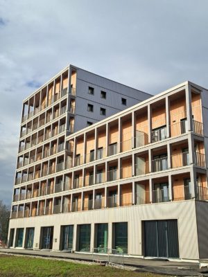 👉 Cet ensemble, imaginé par R2K Architecte et bâti par Bouygues Bâtiment Sud-Est, promeut la mixité sociale et intergénérationnelle :